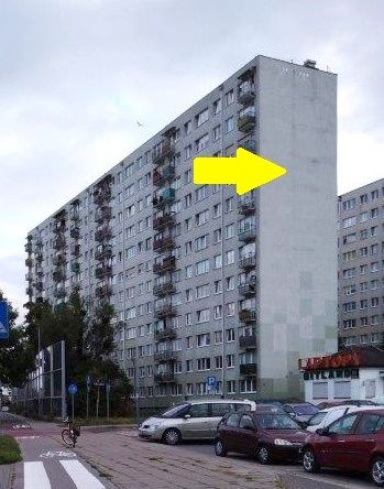 na ścianie budynku przy ul. Sczanieckiego 2-8.