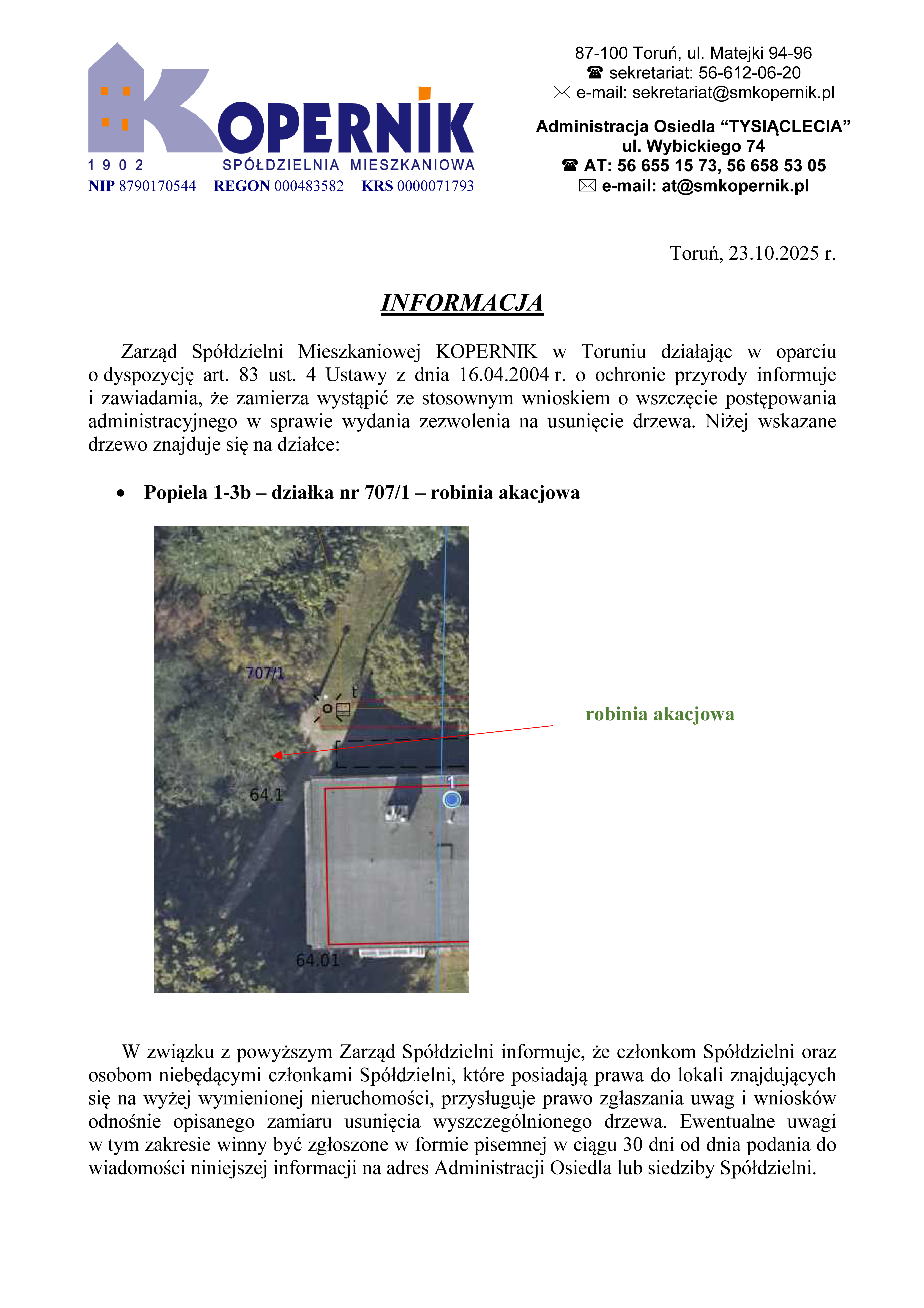 04.11.2025 Wycinka drzew na Osiedlu TYSIĄCLECIALegionów 121-131 Legionów 133-151 Popiela 1-3B Wybickiego 74